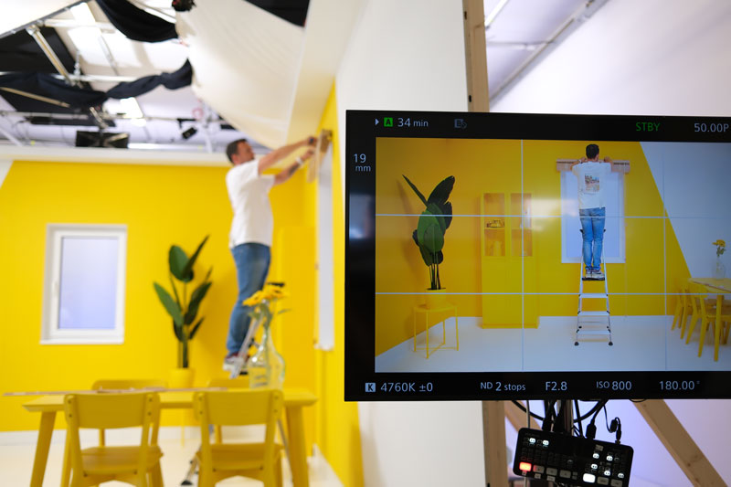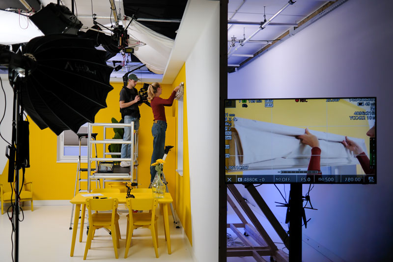 We hebben in onze studio een complete Veneta-woonkamer gebouwd. Alles staat klaar. De setting klopt altijd. De huisstijl zit er automatisch in.